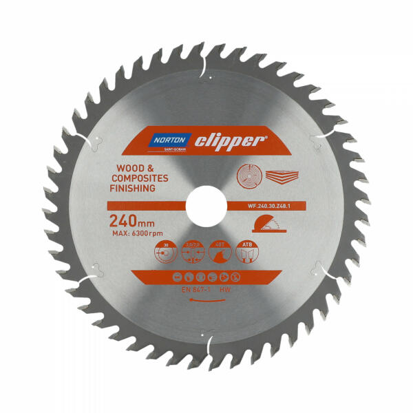 Norton Clipper Pro Wood Finishing fűrészlapokat körfűrészekkel és asztali fűrészekkel való munkavégzésre tervezték. A szinterezett karbidból készült ATB geometriájú fogak garantálják a tárcsák tartósságát és megbízhatóságát puhafa, keményfa és kompozitok vágásakor. A körfűrészlapok professzionális élezésre alkalmasak, így hosszabb ideig is tarthatnak. A tár
