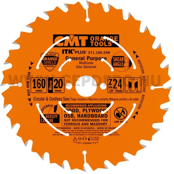 CMT ITK Plus hossz- és keresztvágó körfűrészlap 165mm f:20 Z24 Extra vékony általános célú hossz- és keresztvágó fűrészlap. Ajánljuk hossz- és keresztvágáshoz nagy fordulatszám mellett. Az ITK fűrészlap jelentősen csökkenti az anyagszükségletet a vékony kivitelnek köszönhetően. Kevesebb a hulladék. Alkalmazható gérvágó fűrészek, asztali fűrészek, hordozható