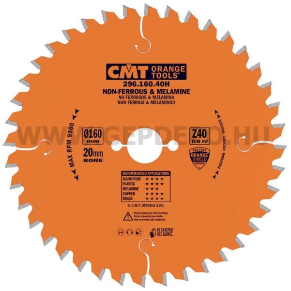 CMT színesfém és laminált vágó körfűrészlap 165mm f:20 Z56 Méretre vágáshoz, kiváló hosszú élettartamú fűrészlap, zajcsillapított. Hosszú élettartamú fűrészlap, melyet ajánlunk asztali körfűrészekhez, gérvágó gépekhez, színesfém és laminált bútorlapok vágásához. Kiváló csövek, húzott termékek és tömör tömbök vágására az alábbi anyagokhoz. : al
