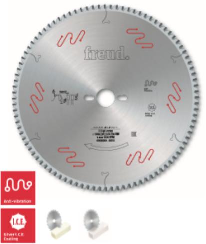 Kétoldalon bevonatos panelek darabolása elővágó fűrész használata nélkül. Főként melamin bevonatos panelek és műanyagok megmunkálására ajánlott. Gépek: Körfűrészek, vízszintes és függőleges tábla elosztó gépek. Jellemzők: Trapéz-egyenes fogazat negatív homlokszöggel. Anyagok: Kétoldalon bevonatos panelek, műanyagok