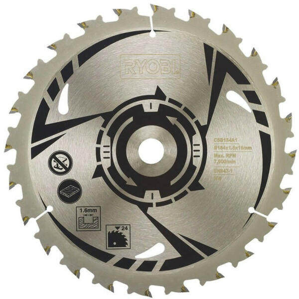 A Ryobi CSB184A1 fűrészlapot a Ryobi körfűrész fűrészelésére használjákTangenciális keményfém fogak a gyors vágáshoz24 fogak garantálják a végleges vágás minőségét