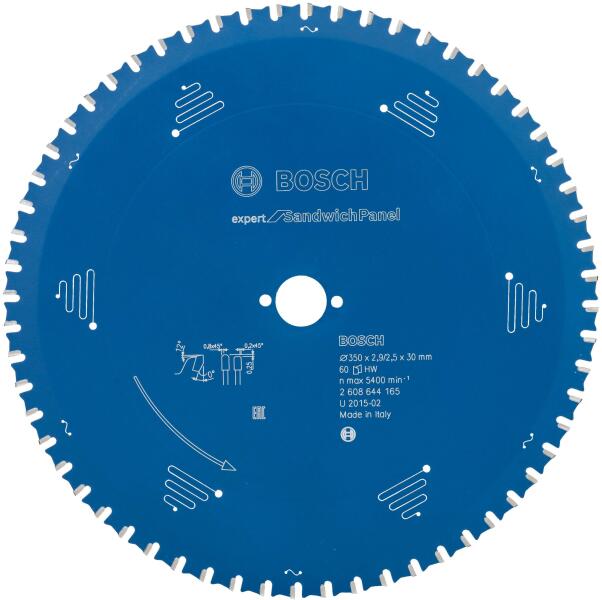 Az Expert for Sandwich Panel körfűrészlap szendvicspaneles anyagok sima vágására alkalmas. Különleges fogkialakításával könnyen átvágható az acéllemez, az acélrétegek és a szigetelőanyag közötti kapcsolat megtartása mellett. A nagy teljesítményű fűrészlap extrakemény Microteq fogazattal rendelkezik, amely a Bosch saját terméke, nagyon tartós keményfém szemcsékbő