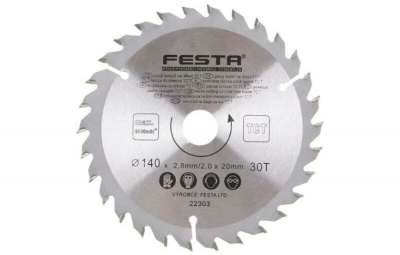 Kiváló minőségű szénacél test (HRC: 40), váltakozó kialakítású wolfram-karbid fogak (HRA: 90), a penge túlmelegedését és deformációját megelőző belső hornyokkal. TECHNIKAI ADATOK Méret (mm) 140x20x2,8x2,0 mm Fűrészfogak száma 30 Fordulatszám (ford/perc) 8100 Felhasználási terület fa