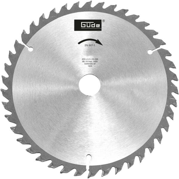 Keményfém fűrészlap 1837-hez Fogszám: 48 db. A fűrészlap átmérője: 450 mm A fűrészlap vastagsága: 2,2 mm A fűrészlap furata: 30 mm Cikkszám: 01837 Nettó tömeg: 2,9 kg Bruttó súly: 3,15 kg