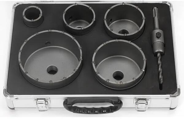 A 6 darabos koronafúró készlet betonhoz ideális vízvezeték-szerelők, villanyszerelők és barkácsolók számára. A körkivágók keményfémlapkákkal szerelve, így rendkívül tartósak és precíz munkavégzést biztosítanak. A készlet különböző méretű körkivágókat tartalmaz, amelyekkel a leggyakoribb építőanyagokban is lyukakat vághat. ✅ Tartós: Keményfémlapkákkal