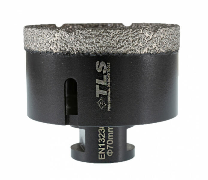 TLS COBRA gyémántszemcsés lyukfúró Átmérő: d=75 mm (M14 menetes csatlakozás) Alkalmazás: száraz és vizes Alkalmazási terület: Gres, kőporcelán, kemény kerámiák, gránit, márvány, természetes kövek, tégla, beton, szikla, egyéb építőipari anyagok TLS COBRA GYÉMÁNTSZEMCSÉS LYUKFÚRÓ : - Gyors, sima és precíz lyukfúrás - Rendkívül hosszú élettartam ( sokkal hoss