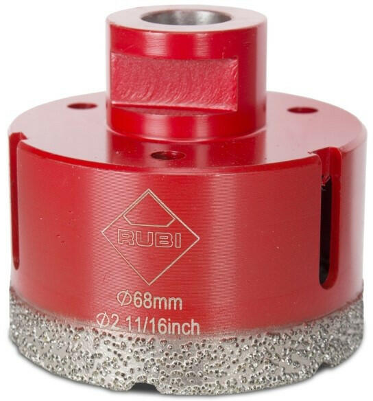 A Rubi 68 mm száraz körkivágó kiváló választás burkolólapokhoz és természetes kövekhez. Ajánlott minden kereskedelemben kapható burkolólaphoz és természetes kőhöz. Ez a kivágó gyors, pontos, megbízható és tartós. A fúrásátmérője 68 mm, szerszámbefogása M14 (kis sarokcsiszolóhoz), de a megfelelő adapterrel (05976) fúrógépbe is fogható. Nem igényel vizes hűté