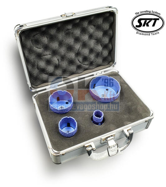 Professzionális gyémántfúró készlet M14 menettel – sarokcsiszolóhoz, valamint adapterrel fúrógéphez is, praktikus és tartós alumínium tokban. Száraz precíz és gyors fúráshoz kőben, járólapban, csempében, gránitban, márványban és más rendkívül kemény anyagokban nem csak az építőiparban. 10 mm-es gyémántréteg magasság mellett a kisebb gyémánt szemcseméret é