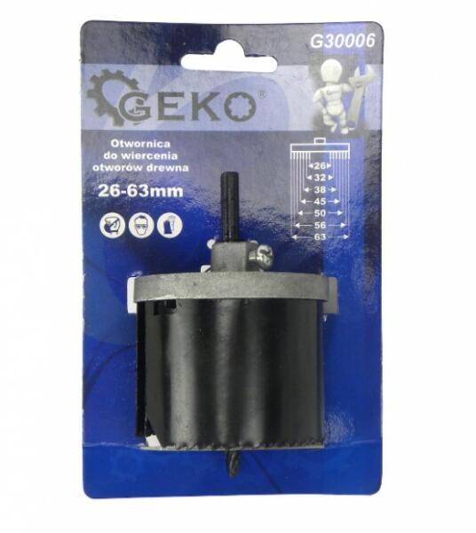 Fúrókorona fához 26-63mm 02614Körkivágó fúrókorona furatok kifúrásához fába 26 - 63 mmTechnikai paraméterek:Koronaátmérők: 26 mm, 32 mm, 38 mm, 45 mm, 50 mm, 56 mm, 63 mm