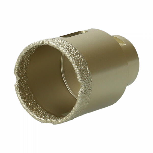 A Norton Clipper Extreme VB Dry vákuumforrasztott gyémánt fúrók kemény kerámialapok, természetes kő, márvány és gránit száraz fúrásához. Az M14 csatlakozó minden elterjedt sarokcsiszolóhoz alkalmas, és könnyű és tiszta fúrást tesz lehetővé. Kezdje el a fúrást 45 fokos szögben. Állítható fordulatszámú sarokcsiszoló használata javasolt. Száraz vágáshoz haszná