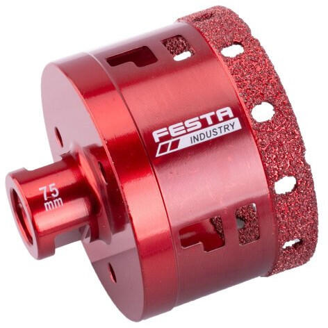 Professzionális gyémánt körkivágó fúrószár „száraz, pontos és gyors fúráshoz kőbe, járólapba, csempébe, gránitba, márványba és más kemény anyagokba nem csak építőipari felhasználásra, M14-es menettel (sarokcsiszolókhoz). Pontos lyukat fúrhatunk a kívánt helyre bármiféle segédszerszám nélkül. Hosszú élettartamú, gyémántréteg magassága 10 mm.