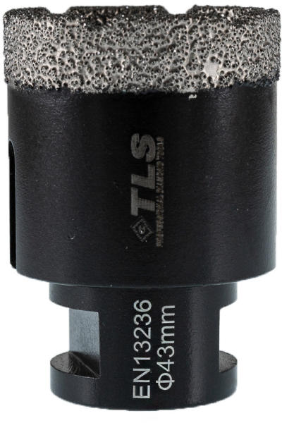 TLS COBRA gyémántszemcsés lyukfúró Átmérő: d=43 mm (M14 menetes csatlakozás) Alkalmazás: száraz és vizes Alkalmazási terület: Gres, kőporcelán, kemény kerámiák, gránit, márvány, természetes kövek, tégla, beton, szikla, egyéb építőipari anyagok TLS COBRA GYÉMÁNTSZEMCSÉS LYUKFÚRÓ : - Gyors, sima és precíz lyukfúrás - Rendkívül hosszú élettartam ( sokkal hoss