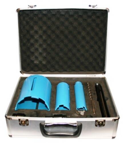 Speciálisan összeállított gyémántszerszámkészlet (fúrás, süllyesztés, csiszolás, vágás) professzionális burkolási munkákhoz. Professzionális gyémántfúró készlet M14 menettel – sarokcsiszolóhoz, valamint adapterrel fúrógéphez is, praktikus és tartós alumínium tokban. Száraz precíz és gyors fúráshoz kőben, járólapban, csempében, gránitban, márványban és
