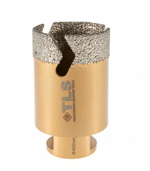 TLS VIPER PRO gyémántszemcsés lyukfúró Átmérő: d=40 mm (M14 menetes csatlakozás) Szegmensmagasság: 15 mm Alkalmazás: száraz és vizes Alkalmazási terület: Gres, kőporcelán, kemény kerámiák, gránit, márvány, természetes kövek, tégla, beton, szikla, egyéb építőipari anyagok TLS VIPER PRO GYÉMÁNTSZEMCSÉS LYUKFÚRÓ : - Gyors, sima és precíz lyukfúrás - Rendkívül