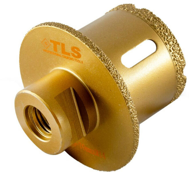 TLS PYRAMID PRO gyémántszemcsés mosdó lefolyó lyukfúró Átmérő: d=50-70 mm (M14 menetes csatlakozás) Alkalmazás: száraz és vizes Alkalmazási terület: mosdó lefolyókhoz lyuk kifúrásához