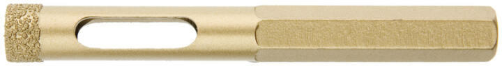 Speciális vákuumforrasztott gyémántvágóél biztosítja a megmunkálást extra kemény anyagokba A gyémántfúró alkalmas: falicsempe, padlólapok, üveg, gránit, márvány fúrására A fúrószár befogómérete hatlapolt: SW9,5 így már 10mm befogású tokmányban is stabilan, elfordulás nélkül rögzíthető