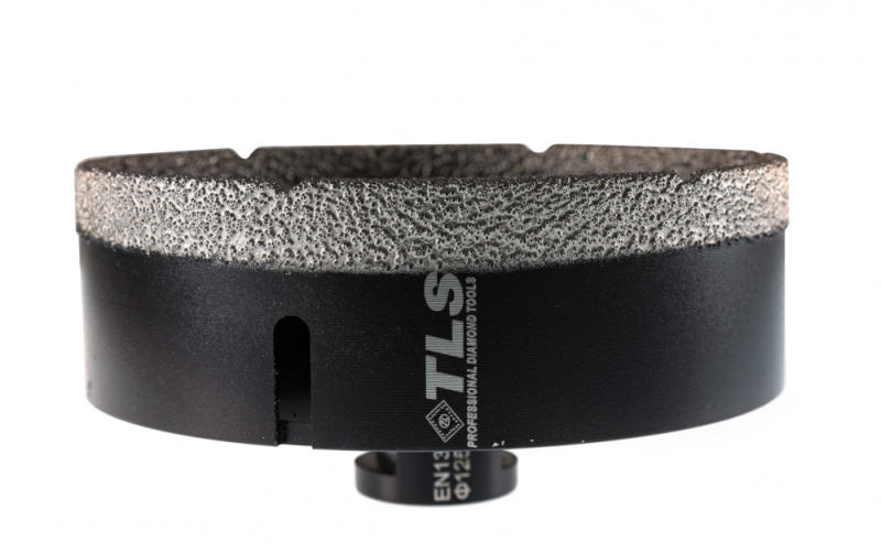TLS COBRA gyémántszemcsés lyukfúró Átmérő: d=125 mm (M14 menetes csatlakozás) Alkalmazás: száraz és vizes Alkalmazási terület: Gres, kőporcelán, kemény kerámiák, gránit, márvány, természetes kövek, tégla, beton, szikla, egyéb építőipari anyagok TLS COBRA GYÉMÁNTSZEMCSÉS LYUKFÚRÓ : - Gyors, sima és precíz lyukfúrás - Rendkívül hosszú élettartam ( sokkal hos
