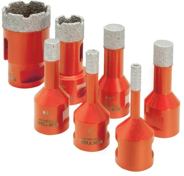 Méretek: 6-8-10-12-14-20-35 mm Csempe, tégla, pórusbeton és hasonló anyagok vágására alkalmas Festett acél alap Gyémánt szegmens: 15 mm, szemcseméret: P35-40. M14-es menetes befogó tengely, ideális sarokcsiszológépekhez. Kiegészítő hűtés nélkül is használható Maximális fordulatszám: 13.000 ford. /perc