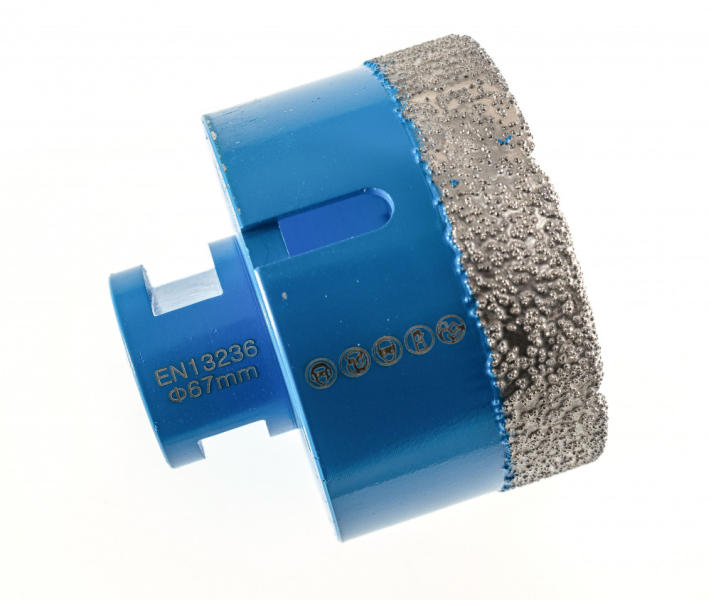 TLS COBRA-PRO gyémántszemcsés lyukfúró Átmérő: d=67 mm (M14 menetes csatlakozás) Alkalmazás: száraz és vizes Alkalmazási terület: Gres, kőporcelán, kemény kerámiák, gránit, márvány, természetes kövek, tégla, beton, szikla, egyéb építőipari anyagok TLS COBRA-PRO GYÉMÁNTSZEMCSÉS LYUKFÚRÓ : - Gyors, sima és precíz lyukfúrás - Rendkívül hosszú élettartam ( sok