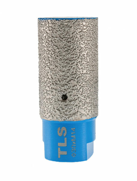 TLS FINGER gyémántszemcsés lyuktágító-lyukmaró Átmérő: d=30 mm (M14 menetes csatlakozás) Alkalmazás: száraz és vizes Alkalmazási terület: Gres, kőporcelán, kemény kerámiák, gránit, márvány, természetes kövek, tégla, beton, szikla, egyéb építőipari anyagok. -Meglévő kerek vagy kúp alakú furatok felnagyítása és alakítása lehetséges a lyukmaró-lyuktágító s