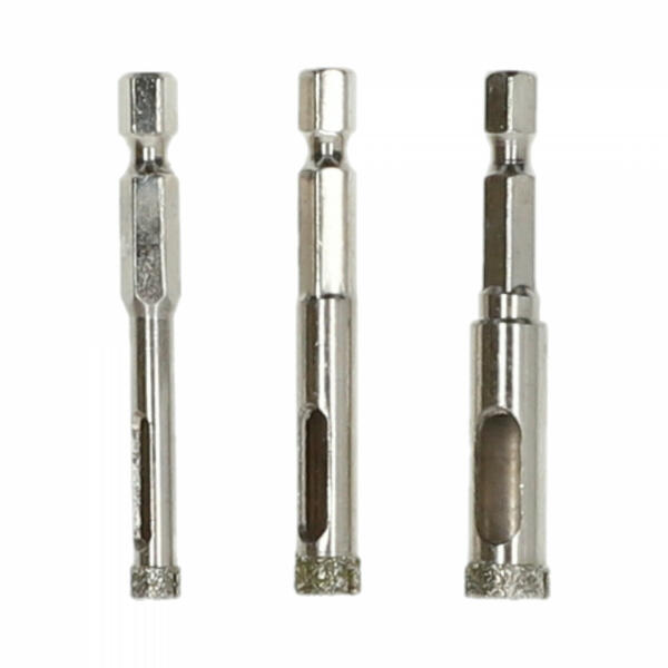 Speciális gyémántbevonatú vágóél bíztosítja a megmunkálást extra kemény anyagokba. A gyémántfúró alkalmas: falicsempe, padlólapok, üveg, gránit, márvány fúrására. A fúrószár befogómérete hatlapolt: SW9,5 így már 10mm befogású tokmányban is stabilan, elfordulás nélkül rögzíthető.