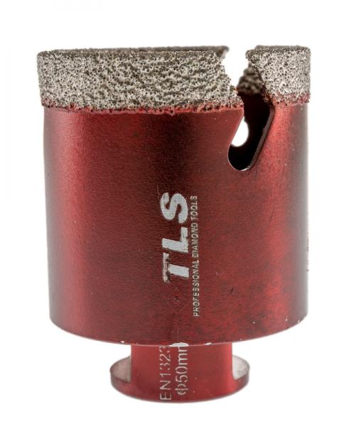 TLS VIPER gyémántszemcsés lyukfúró Átmérő: d=50 mm (M14 menetes csatlakozás) Szegmensmagasság: 10 mm Alkalmazás: száraz és vizes Alkalmazási terület: Gres, kőporcelán, kemény kerámiák, gránit, márvány, természetes kövek, tégla, beton, szikla, egyéb építőipari anyagok TLS VIPER GYÉMÁNTSZEMCSÉS LYUKFÚRÓ : - Gyors, sima és precíz lyukfúrás - Rendkívül hosszú
