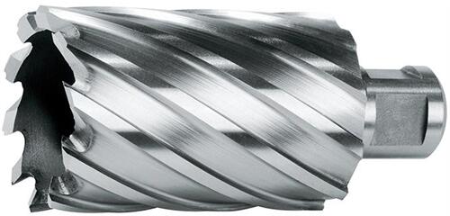 Kivitel: HSS-Co, AlTiN bevonatú felület, ∅ 19 mm Weldon-szárral. CBN köszörült, jobbos vágás. Alkalmazás: Alkalmazható MK befogós mágnestalpas és oszlopos fúrógépen. A magfúró csak egy vékony anyaggyűrűt forgácsol. A megmaradó fúrási magot egy vezető- és kilökőcsap löki ki rugóerő segítségével. A forgács gyors elvezetése felfelé történik és minimalizálja