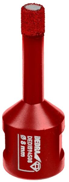 Fejméret: 8 mm Gyémánt szemcse Hossz: 60 mm Menet: M14 - bármilyen sarokcsiszolóra felszerelhető Nedves és száraz alkalmazásokhoz egyaránt használható Használható: Kerámiacsempék, Porcelán, Beton, Tégla, Üveg, Aszfalt, Laminált padló, PVC, Acél, Színesfémek és Fa lyukak fúrásáraa