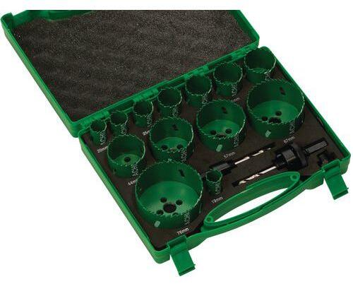 Komplett lyukfűrész készlet Rugalmas műanyag tok.