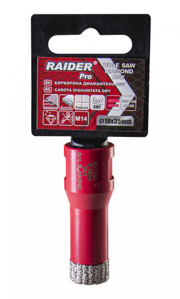 TLS COBRA-PRO gyémántszemcsés lyukfúró Átmérő: d=15 mm (M14 menetes csatlakozás) Alkalmazás: száraz és vizes Alkalmazási terület: Gres, kőporcelán, kemény kerámiák, gránit, márvány, természetes kövek, tégla, beton, szikla, egyéb építőipari anyagok TLS COBRA-PRO GYÉMÁNTSZEMCSÉS LYUKFÚRÓ : - Gyors, sima és precíz lyukfúrás - Rendkívül hosszú élettartam ( sok