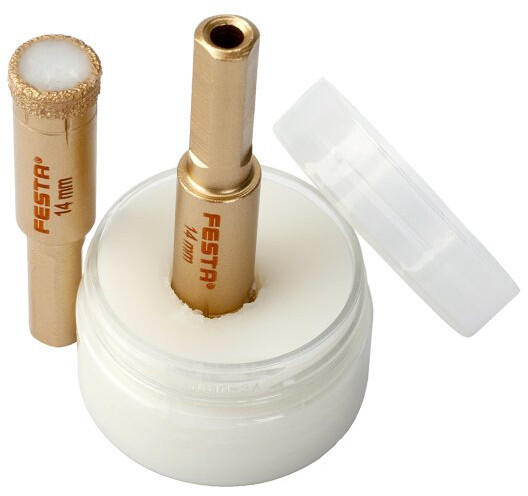 Professzionális gyémántfúró készlet M14 menettel – sarokcsiszolóhoz, valamint adapterrel fúrógéphez is, praktikus és tartós alumínium tokban. Száraz precíz és gyors fúráshoz kőben, járólapban, csempében, gránitban, márványban és más rendkívül kemény anyagokban nem csak az építőiparban. 10 mm-es gyémántréteg magasság mellett a kisebb gyémánt szemcseméret é