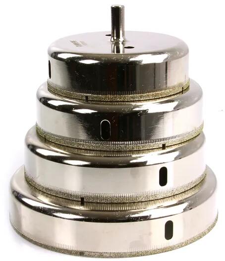Koronafúró dobozfúró készlet gyémántszemcse bevonattal 33,53, 67,73, 83 mm STVYKSET7 Ajánlott: burkoláshoz, téglához, falakhoz, gipszkartonhoz, könnyű kőhöz, fiókok furatainak vágásához Speciális fúró gyémántszemcse bevonattal. Egyszerű használat, szép fúráskép. Sebesség: min. 800, legfeljebb 1500 fordulat / perc Méretek: -33 mm -53 mm -67 mm -73 mm -83 mm Garancia: