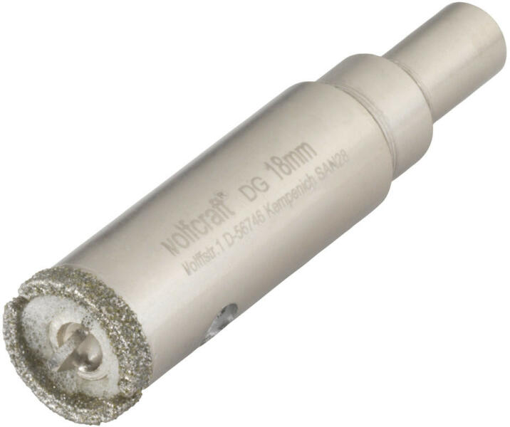 Wolfcraft gyémánt koronafúró Ø18mm Vágási átmérő: 18 mm Max. fúrási mélység: 45 mm 10 mm-es hexagonális azaz hatlap befogás - optimális erőátvitel Központosító keményfémlapkás fúróval. Nincs szükség külön fúróra a Wolfcraft fúrókorona megvezetéséhez. Központosító fúróél masszív, erős anyaga gondoskodik pontos elcsúszásmentes fúrásról, és a tökél