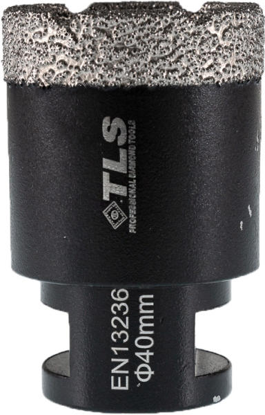 TLS COBRA gyémántszemcsés lyukfúró Átmérő: d=40 mm (M14 menetes csatlakozás) Alkalmazás: száraz és vizes Alkalmazási terület: Gres, kőporcelán, kemény kerámiák, gránit, márvány, természetes kövek, tégla, beton, szikla, egyéb építőipari anyagok TLS COBRA GYÉMÁNTSZEMCSÉS LYUKFÚRÓ : - Gyors, sima és precíz lyukfúrás - Rendkívül hosszú élettartam ( sokkal hoss