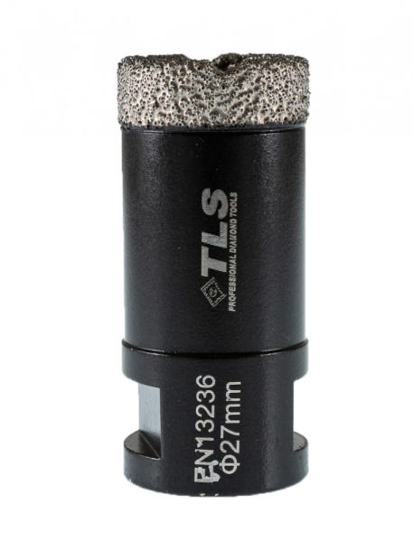 TLS COBRA gyémántszemcsés lyukfúró Átmérő: d=27 mm (M14 menetes csatlakozás) Alkalmazás: száraz és vizes Alkalmazási terület: Gres, kőporcelán, kemény kerámiák, gránit, márvány, természetes kövek, tégla, beton, szikla, egyéb építőipari anyagok TLS COBRA GYÉMÁNTSZEMCSÉS LYUKFÚRÓ : - Gyors, sima és precíz lyukfúrás - Rendkívül hosszú élettartam ( sokkal hoss