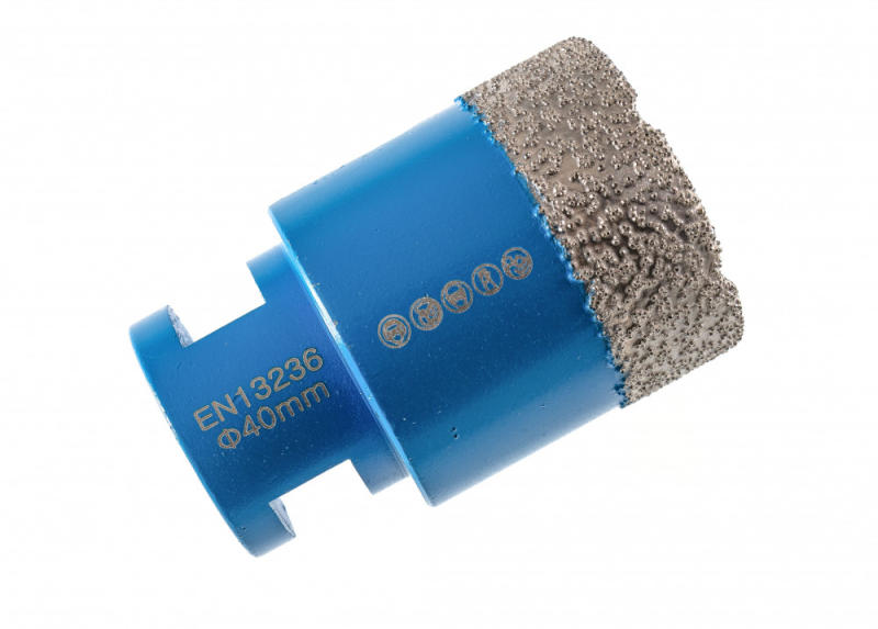 borttal bevonva (rossz minőségű gyémánt); magas gyémántkoncentráció; profilo zott hengeres fogantyú, amely lehetővé teszi a nagyobb lyukak pontos fúrását fúrók és fúrócsavarok segítségével.