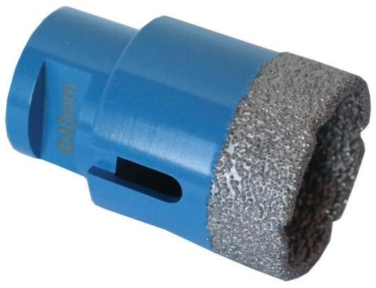 TLS COBRA-PRO gyémántszemcsés lyukfúró Átmérő: d=40 mm (M14 menetes csatlakozás) Alkalmazás: száraz és vizes Alkalmazási terület: Gres, kőporcelán, kemény kerámiák, gránit, márvány, természetes kövek, tégla, beton, szikla, egyéb építőipari anyagok TLS COBRA-PRO GYÉMÁNTSZEMCSÉS LYUKFÚRÓ : - Gyors, sima és precíz lyukfúrás - Rendkívül hosszú élettartam ( sok