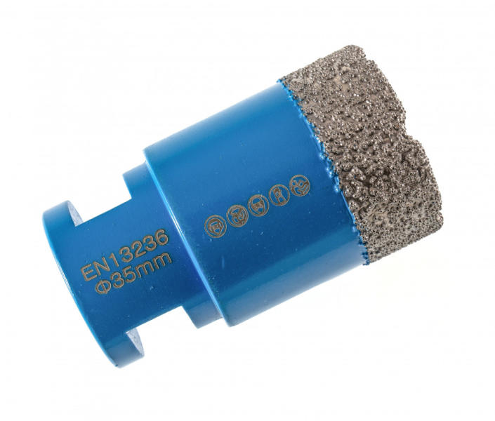 TLS COBRA-PRO gyémántszemcsés lyukfúró Átmérő: d=35 mm (M14 menetes csatlakozás) Alkalmazás: száraz és vizes Alkalmazási terület: Gres, kőporcelán, kemény kerámiák, gránit, márvány, természetes kövek, tégla, beton, szikla, egyéb építőipari anyagok TLS COBRA-PRO GYÉMÁNTSZEMCSÉS LYUKFÚRÓ : - Gyors, sima és precíz lyukfúrás - Rendkívül hosszú élettartam ( sok