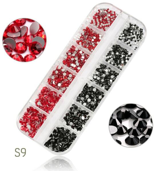 Különleges strassz kristály válogatás, ezüst alappal, amely normál nem ragasztós felületű. 1440 darabos kristály strassz készlet, 2 féle szín összeállításban, 6 féle méretben S9 használata: A köröm felületét a szokásos módon készítsük elő, majd alapozzuk le egy réteg alap gél lakkal. Köttetés után fessük a megfelelő színűre, ez lesz az alap. A szín köttet
