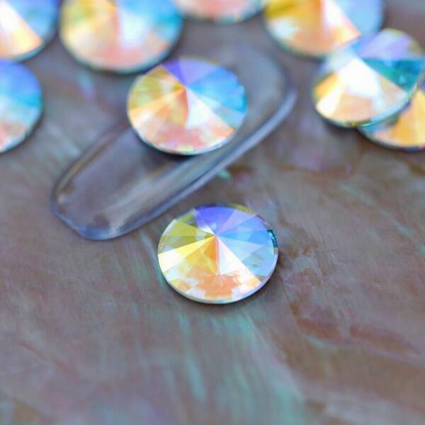 Preciosa formakő Rivoli Ab, különleges csiszolású prémium ólomkristály kerek formában színjátszó színben. 10mm átmérőjű nagy méretű körömdísz különleges alkalmakra, versenyekhez. Lapos aljú, rögzítéséhez glue gélt ajánljuk. Ismerd meg a Preciosa különleges díszítőit, minőségük a Swarovski termékeivel vetekszik.