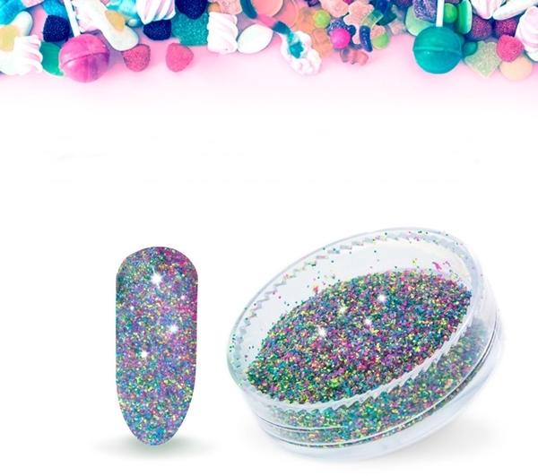 A Classic Nails szivárvány sugar effect por 301709 kis szemcseméretű, ennek előnye, hogy könnyedén megtapad a köröm felületén. Többféle színű szemcsékből áll össze, így az eredmény egyedi színhatás. Használata egyszerű: Sugar effect körömdíszítéshez használj díszítő zselét (vagy más fixálás mentes zselét/ gél lakkot), szórd bele a terméket, majd köttesd U