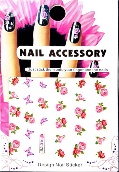 Vizes (akril hatású) körömdíszítő matrica virágos mintákkal a kéz- és láb körmeinek díszítésére