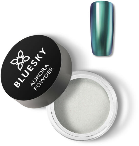 Kék árnyalatú BLUESKY Aurora Powder könnyen felvihető, fényes, sarki fény hatású díszítópor.