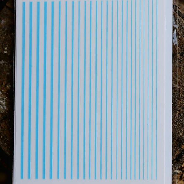 Körömmatrica neon kék színben, ragasztható, különböző vastagságú díszítő csíkok. Egyszerűen használható körömdíszítő mely kiválóan kombinálható neon színű strasszköveinkkel és neon üveg cseppformáinkkal.