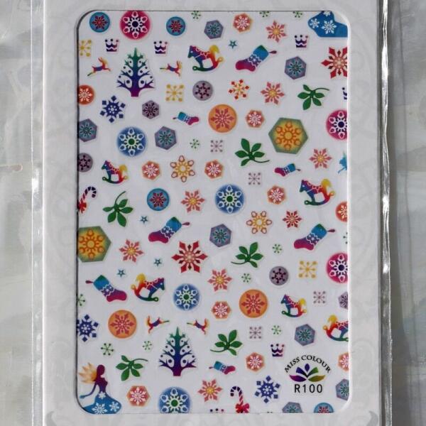 Karácsonyi körömmatrica 3D, ünnepi színes mintákkal 3D-s kivitelben. Ragasztó réteggel ellátott matrica, önmagában is kitűnő dekoráció.