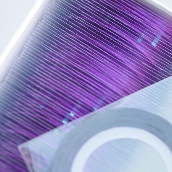 Körömdíszítő szalag Purple AB, színjátszó lila színben, 1mm-es szélességben. Ajánlott mindazoknak akik nem szeretnének bajlódni egyenes vonalak megfestésével, vágynak különleges mintákra és színekre. A díszítőszalag remek kiegészítője lehet egy kompozíciónak, de önmagában is feldobja a munkánkat. Az alap színeken kívül metál fényű és színjátszós színekbe
