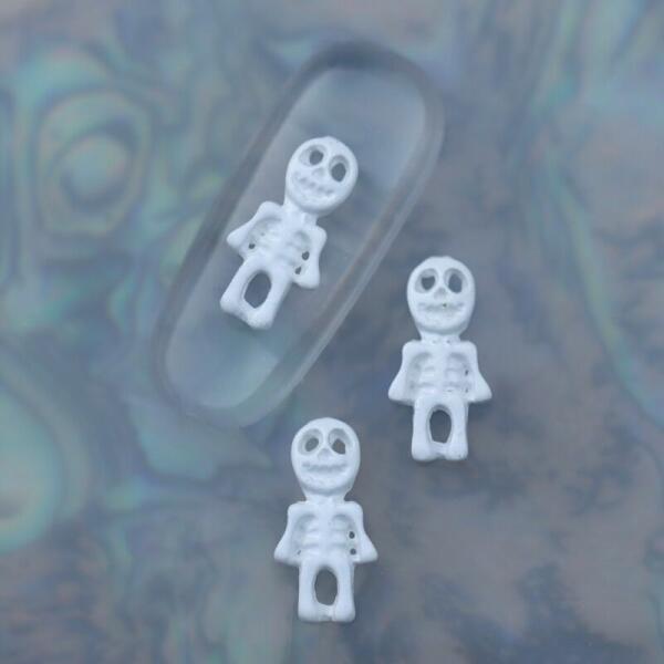 Zodiac körömdísz fehér színű csontváz formában, nagyszerű halloweeni körömdekoráció. Glue gél segítségével tartósan a körömfelületre fixálható.