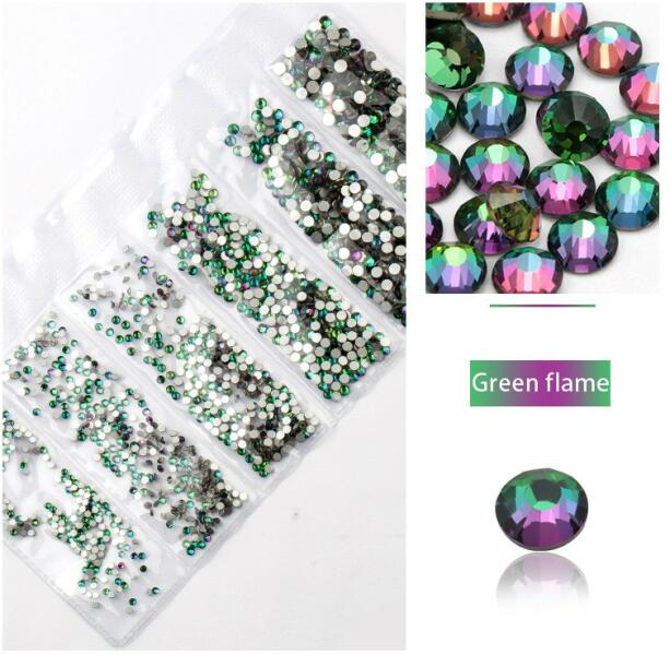 Különleges strassz kristály válogatás, ezüst alappal, amely normál nem ragasztós felületű. 1680 darabos kristály strassz készlet 6 féle méretben P31 - Green flame használata: A köröm felületét a szokásos módon készítsük elő, majd alapozzuk le egy réteg alap gél lakkal. Köttetés után fessük a megfelelő színűre, ez lesz az alap. A szín köttetését követően, spe