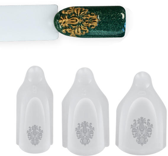 Termék részletekA Silicone Art Design tulajdonképpen egy 3D nyomda, mellyel könnyedén domború díszítést lehet készíteni. Szinte bármely színes anyaggal működik: 3 Step, ONE STEP CrystaLac, Royal Gel, Royal Cream, 3D zselé, Színes zselék és Xtreme Fusion AcrylGel is használható hozzá. Töltsd ki a színes anyaggal a szilikon nyomdamintát, a felesleget töröld le egy Cleanser Pad-dal. Köttesd
