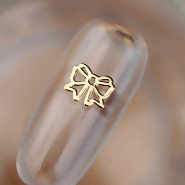 Metál körömdíszítő lemez, arany masni. Egyszerűen használható, hajlítható körömdíszítő mely kiválóan kombinálható arany színű szegecseinkkel, változatos színvilágú strasszköveinkkel.